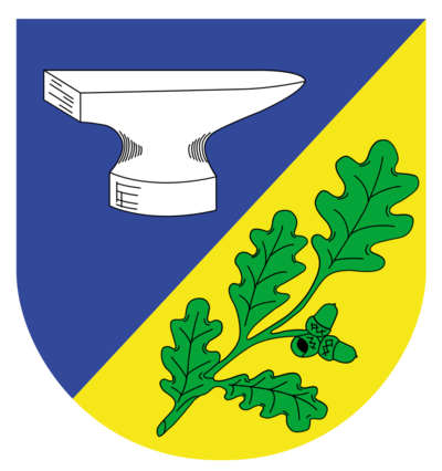 Dieser Hintergrund spiegelt sich wider im Wappen der Gemeinde mit Eichenzweig und Amboss.